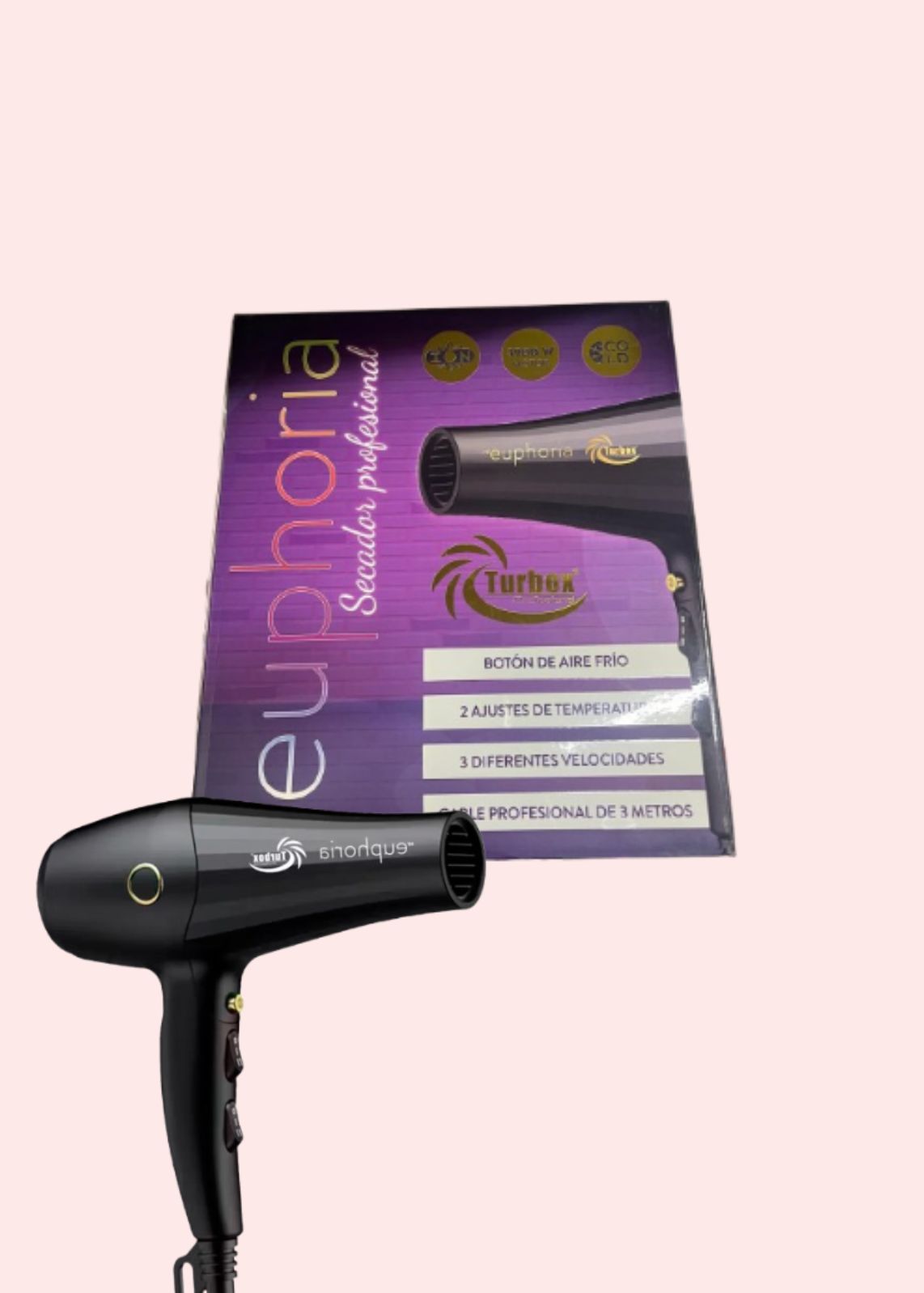 Secador profesional Turbox NT-Euphoria 3900W para estilizado de alto rendimiento.